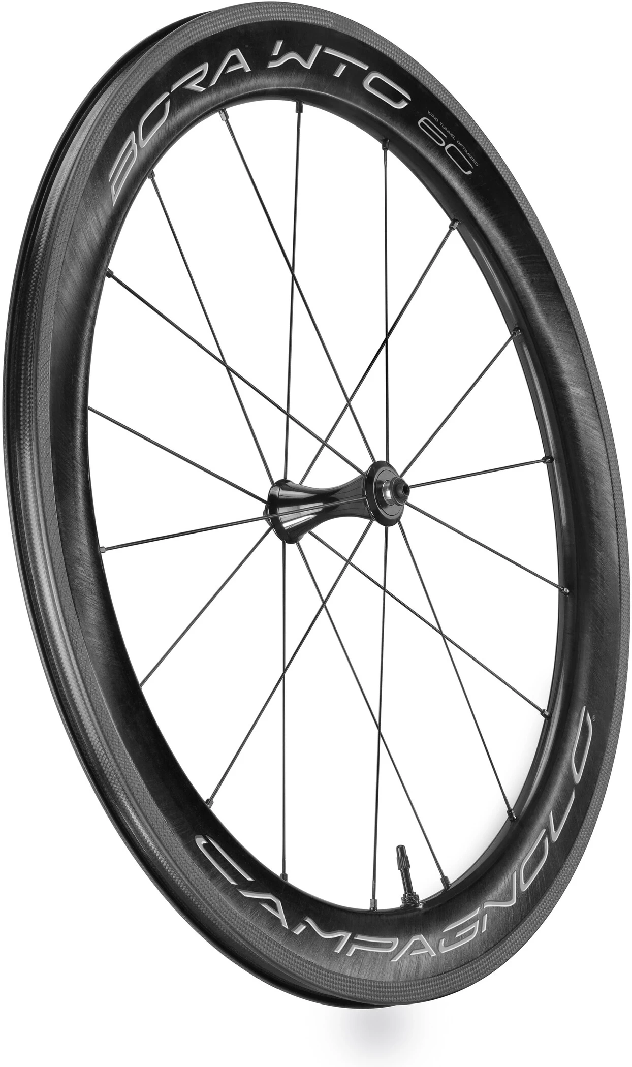 With the new Bora WTO 60, Campagnolo has focused on producing the most efficient wheels possible in terms of decreasing rolling resistance as the cyclist moves and maximising aerodynamic efficiency. The acronym WTO – WIND TUNNEL OPTIMIZED – calls to mind the environment that the team of Campy Tech Lab engineers worked in to meet these challenging project objectives. The new Bora WTO 60 wheels feature exclusive design characteristics that establish new standards in aerodynamic efficiency. Directly from the wind tunnel to the market, the pair of Bora WTO 60 wheels is destined to become the necessary choice every time a cyclist faces a route that requires average speeds of more than 40 km/h.