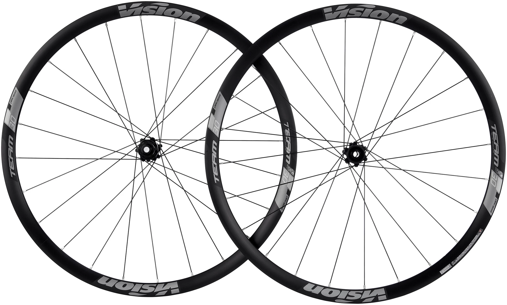 The disc version of the Team30 is an affordable upgrade for any bike with current generation disc brakes. With a profile height of 30 mm and CNC-machined hubs with sealed cartridge bearings, the construction is similar to the Team30 wheels for rim brakes. Writing brakes stress rims differently than rim brakes, so the Team30 Disc has 24 spokes at the front and 24 at the rear. Double crossed spokes on the front wheel and a mix of double and triple crossed lacing on the rear wheel cope with the stresses that occur with disc brakes.