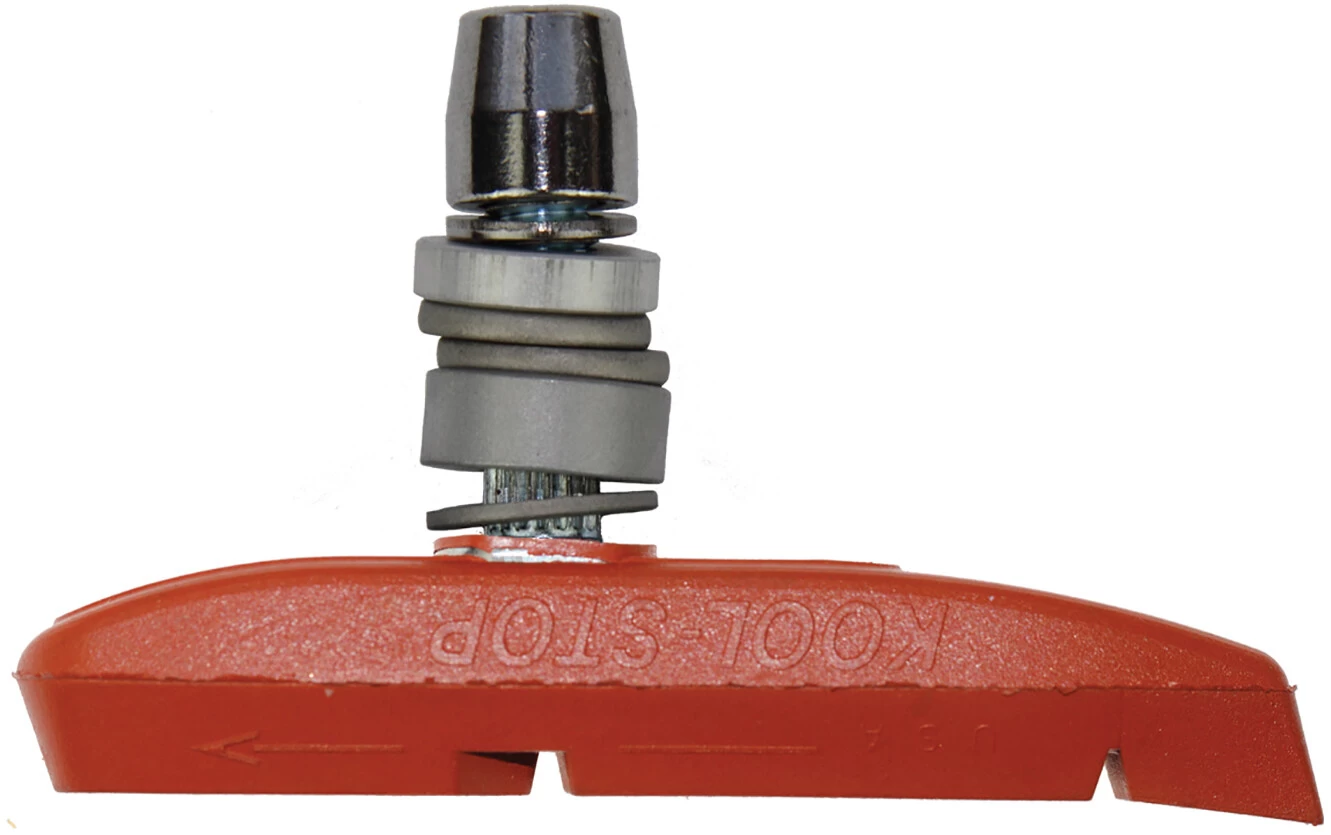 Pad with V-brake washers that can be fitted with the original “pad-lock” gripper washer system to fit all types of brake systems.