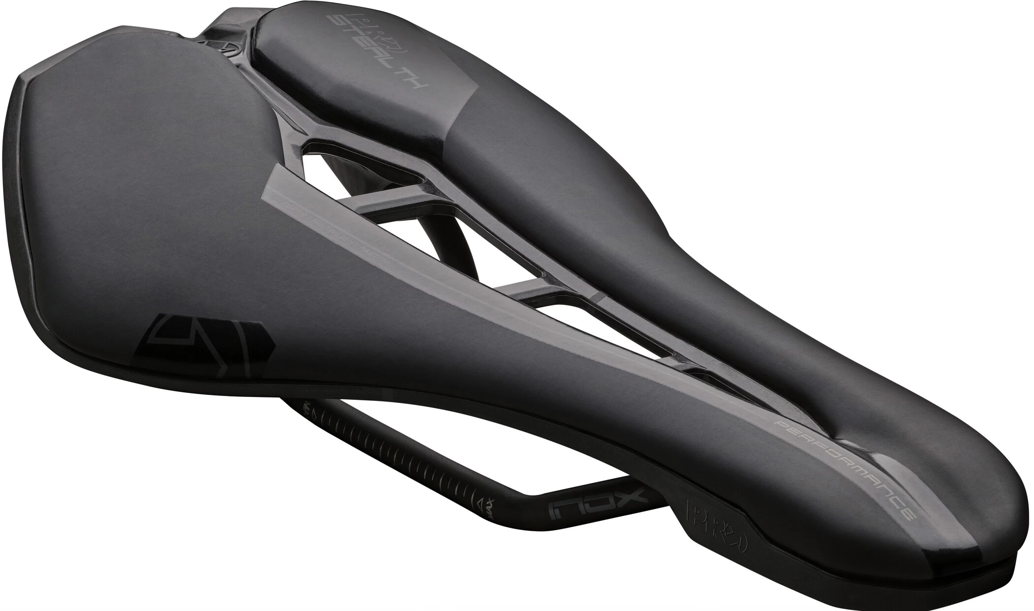 Designed for sports-oriented riders, the PRO Stealth Performance saddle is aimed at road cyclists who seek an aggressive aerodynamic seating position. The saddle shell is made of carbon reinforced polymer, which rests on a stainless steel frame, and has a lightweight EVA padding on top with a soft PU cover. Its wide nose and wide anatomical relief area with the special triple bridge design ensure that flexible riders can lean into a low riding position from the pelvis. At the same time, the saddle reduces pressure on vessels or nerves in the perineal area.