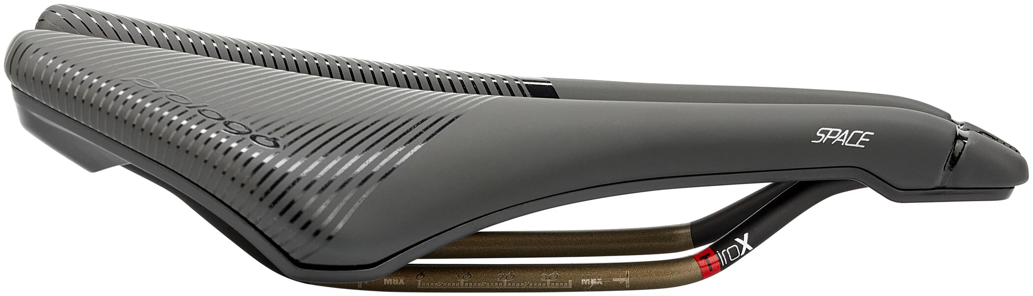 The name Dimension contains the importance of the project itself: to create an innovative product in terms of size, design and ergonomic shape suitable for all disciplines and perfect for men and women. Dimension is comfort, performance and lightness. The combination of short nose (35 mm less than a traditional saddle) and PAS system ensures blood flow and pressure relief, ensuring comfort even in aerodinamic position or maximum pushing phase. The wider seating area (width 143 mm) allows a better distribution of body weight. The Dimension saddle has been tested and developed in collaboration with the best international professional teams to ensure a saddle suitable for all users.